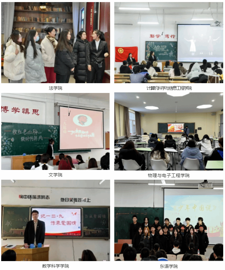 为深入学习贯彻习近平新时代中国特色社会主义思想和党的二十大精神,有效推动团员和青年主题教育,弘扬以伟大建党精神为源头的中国共产党人的精神谱系,以“一二·九”运动八十八周年为契机,引导广大团员青年进一步了解历史、铭记历史,加强全校团员青年爱国主义教育,学校团委组织开展纪念“一二·九”运动系列活动,各基层团委根据学科专业特点,创新活动内容,积极动员引领全校团员青年参与到活动中。一、不忘来时路,砥砺奋进时法学院、教育科学学院、物理与电子工程学院、东语学院、化学化工学院、计算机科学与信...