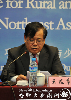 王选章在开幕式上致辞。他首先简要介绍了我校的基本情况,特别就我校对基础教育音乐教学师资的培养,建设现代文化艺术产业园区等方面进行了详细阐述,并表示哈师大将全力以赴做好会议期间的各项工作,确保研讨会取得圆满成功。
