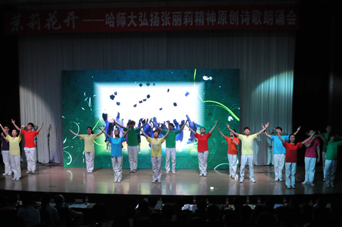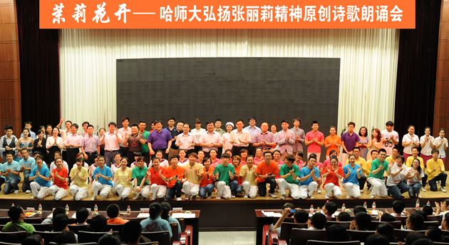 为进一步弘扬张丽莉精神,加强师德师风建设,6月15日,“茉莉花开”弘扬张丽莉精神原创诗歌朗诵会在科学会堂隆重举行。团省委副书记陈凯云,校党委书记,党委副书记王为正,党委副书记王广明,党委常委、工会主席张国昭,党委常委、组织部长尹占军出席诗会。
