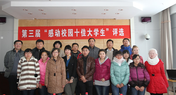 11月29日,学生工作处组织召开了“第三届感动校园十佳大学生”评委会评选活动,学生工作处领导、部分担任评委的学院党委副书记和学生代表参加了本次活动。活动中,19名参评选手依次进行了自我展示,他们中有的全面发展、多才专艺;有的勤于思考、发明专利;有的自主创业、成绩优异;有的身患疾病、自强不息;有的感恩社会、热心公益。