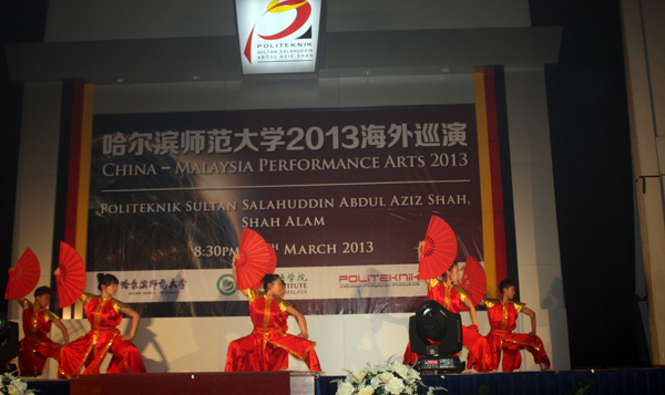 29日,巡演团来到了位于雪兰莪州沙阿拉姆的苏丹阿布达拉阿兹沙理工学院,拉开了第三场巡演的帷幕。马来西亚30所工艺学院联合体工业关系部主席、高教部理工技术教育处处长阿尔沙德•卡西姆博士及夫人,副处长那茨利•依德利斯及夫人,苏丹阿布达拉阿兹沙理工学院的副院长穆哈默德•沙罗利•依兹梅尔出席了演出活动。演出正式开始前,苏丹阿布达拉阿兹沙理工学院的学生首先表演了具有当地民风的欢迎舞蹈。随后,阿尔沙德•卡西姆致辞,认为巡演团的演出进一步加深了两国的友谊,预祝演出成功。当晚的演出现场高潮迭起,场内时常响起热烈的掌声。演出期间还穿插了苏丹阿布达拉阿兹沙理工学院的歌曲表演,令现场气氛融洽。整场精彩的演出令理工学院的学生格外兴奋,他们对演员的表演给予了高度赞扬,并对中国多元的民族文化表示赞叹。演出结束时,他们久久不愿离去,与巡演团依依惜别。