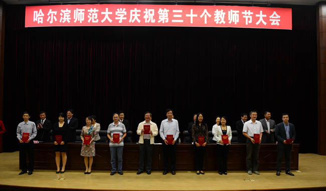 校党委书记在会上发表重要讲话。校党委书记首先代表学校党政领导向辛勤工作在教学、科研、管理和后勤服务工作一线的教职员工致以节日的祝贺和崇高的敬意,向为学校建设和发展作出重要贡献的离退休老教师、老同志致以诚挚的问候和衷心的感谢,向受到表彰的优秀教师表示热烈的祝贺。校党委书记指出,我校广大教师牢记立德树人的神圣使命,用高尚的师德师风和人格魅力熏陶学生、激励学生,用赤诚的情感和精湛的学识关爱学生、培养学生,为我校人才培养和教育事业发展做出了卓越的贡献,也为学校赢得了崇高的社会声誉;在过去的一年里,在学校全面深化改革、全校师生形成强化内涵建设广泛共识的基础上,学校在教育教学、科学研究和学科建设等方面,经过数年沉潜积淀、艰苦努力,捷报频传、硕果累累;当前我校已进入全面深化改革、建设高水平大学的重要历史发展阶段,如何把党和国家提高人才培养质量的要求转变成具体可行的思路、制度和措施,真正抓住关键环节和突破点,切实推动学校走以人才培养质量提升为核心的内涵式发展道路,是今后一个时期需要共同深入思考和不断实践的根本命题。校党委书记并对广大教师提出三点希望:一是坚守高尚的职业理想,树立崇高师德,肩负起人民教师的光荣职责;二是希望大家处理好教书与育人的关系,做学生健康成长的指导者和知心朋友;三是希望广大教师坚定发展信念、关心学校发展,不断追求卓越。