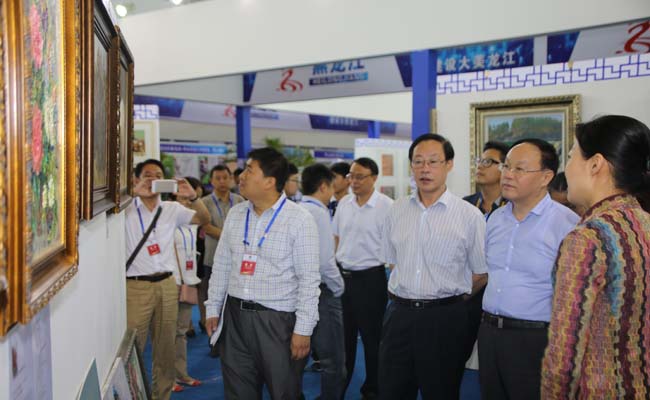 黑龙江省展馆设在文博会主会场W1号展区,省政府副秘书长王国才,省文化厅副厅长綦军等省、市、厅、局相关领导和各市、区、县文化知名企业、文化产业展商参会参展。黑龙江省展馆专门设立了哈尔滨国际油画交易中心——油画特展展区。本次展览,哈尔滨国际油画交易中心管委会组织了嘉兰德俄罗斯艺术画廊、叶卡捷琳娜俄罗斯艺术馆、基辅名嘉油画馆、凤跃俄罗斯油画美术馆四家知名企业参展,展出精品特色原创油画100余幅,是我省展区的一大亮点。大会组委会和出席开幕式领导嘉宾及社会各界人士对油画特展给予了高度评价。