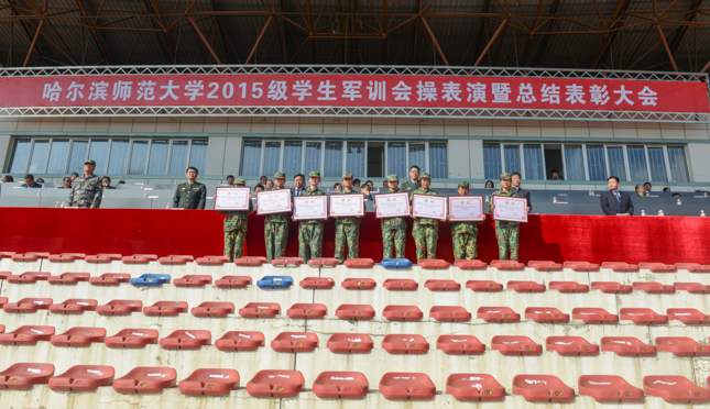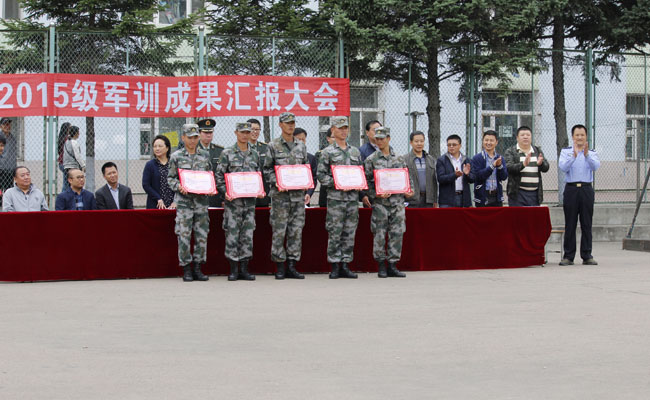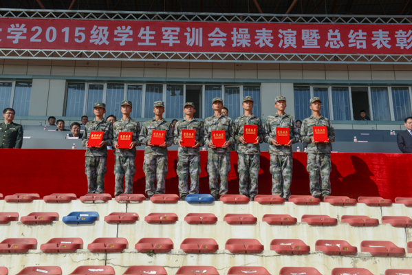 分列式结束后,徐晓风、江南校区综合办主任高蕴玉分别宣读了以“中国梦、强军梦、青春梦”为主题的抗战歌曲大合唱比赛江北校区及江南校区的报评大赛、“军训先进连队”、“军训先进个人”、“内务优秀寝室”、“优秀教官”等获奖单位和个人名单,与会领导为获奖单位和个人颁发了奖品和证书。