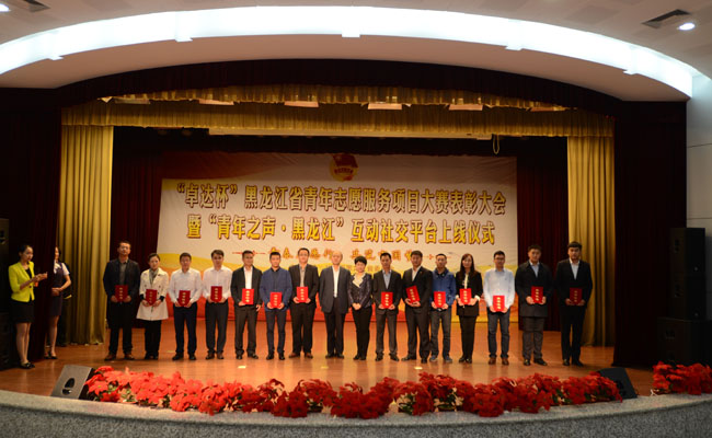 9月25日,黑龙江省青年志愿服务项目大赛表彰大会暨“青年之声 黑龙江”互动社交平台上线仪式在哈尔滨农业大学举办。团省委书记李豪岩、副书记王淑滨、志工部部长姜庆华等同志出席启动仪式并为获奖代表颁奖。由我校王为正教授主持申报的《青年志愿服务活动长效机制建设研究》项目在众多项目中脱颖而出喜获项目金奖,我校荣获黑龙江省志愿服务优秀组织单位。