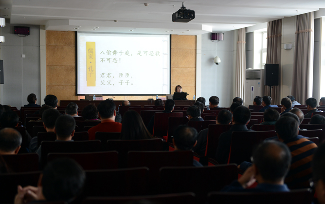 学习会上,文学院副院长侯敏教授作了题为《诸子百家及其思想传承》的辅导报告,阐释了儒家、墨家、道家、法家思想的丰富内涵及其历史传承,进一步厘清了社会主义核心价值观的历史渊源及文化基因。报告主题突出,内涵丰富,逻辑严密,鞭辟入里,既有理论高度,又具现实针对性,进一步激发了广大党员干部学习弘扬中华优秀传统文化的积极性。