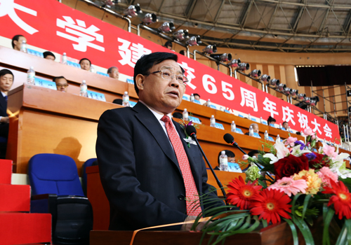 校长王选章教授在讲话中简要回顾了学校65年走过的光辉历程,对“行知精神”中影响最为深远的无私奉献境界、知行合一理念、务实进取品格、天下为公理想等内涵进行了诠释,对学校未来的发展建设作了展望。他说,经过65年的发展,学校坚守培育英才、繁荣学术、振兴祖国、弘扬文化的历史使命,培养和输送了39万余名各级各类优秀人才,为国家和地方经济社会发展作出了重要贡献;形成了以“行知精神”为核心的哈师大精神,支撑和推动着学校事业不断前行,也为学校未来的持续快速发展提供着生生不息的强大精神动力。今后,学校将在全面建成小康社会和实现中华民族伟大复兴中国梦的伟大征程中,继续深入贯彻习近平总书记系列重要讲话精神,践行“创新、协调、绿色、开放、共享”的发展理念,全面深化教育综合改革,培养更多的优秀学子,建设一流的教师队伍,构建科学的治理结构,坚守大学的精神和使命,不断推动学校各项事业发展,为把我校建设成为以教师教育为特色的高水平教学研究型大学而努力奋斗。