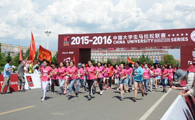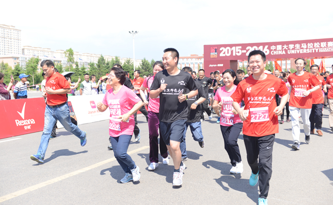 (刘博/文)2016年6月8日,中国大学生马拉松联赛哈师大站比赛暨我校“奔跑在校园”微型马拉松赛在松北校区校园内鸣枪开赛。中国大学生体育协会副主席张磊、教育厅体卫艺处副处长郭青山、我校党政领导同5000余名参赛师生和志愿者参加此项活动。