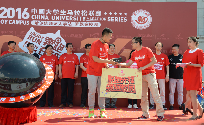 图 赛事主办方为前期预热活动评选的“悦跑先锋”颁奖