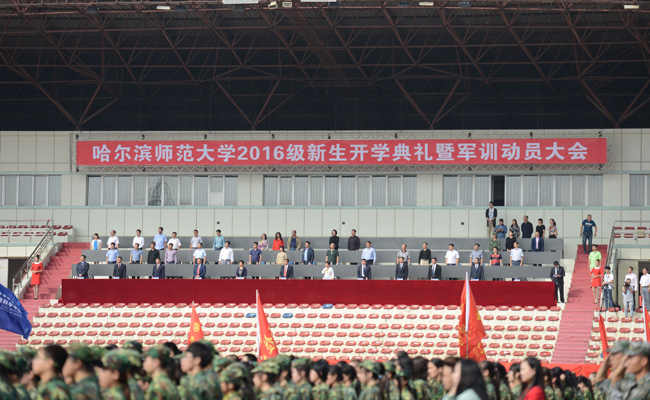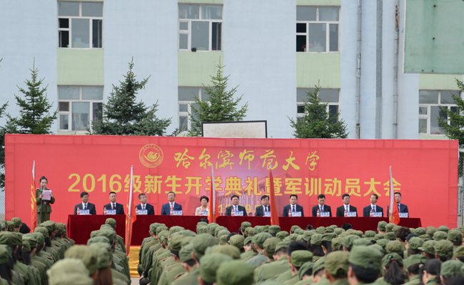 王选章在典礼上讲话,王选章代表学校向刚刚迈入大学校门,开始自己崭新学习的2016级新同学表示热烈的欢迎和祝福。王选章指出,做为最年轻的“哈师大人”,同学们要认识自己,理性思考问题,慎思明辨,科学规划人生;要学会明辨是非,在大学除了要学好文化知识,更要树立正确的“世界观、人生观、价值观”;要做到行知合一,“行知合一”是我校“行知精神”大学文化的重要组成部分。陶行知先生主张:“行是知之始,知是行之成”。既倡导学习与立志,又要学以致用,崇尚实践。“最美女教师”——“全国道德模范”张丽莉、“助宝贝回家”——“2015年感动中国人物”秦艳友等一大批哈师大的优秀学子,他们用青春和热血挥洒正能量,充分体现了我校“行知精神”大学文化中“知行合一”。希望同学们都能够以他们为榜样,不忘初心,知行合一,扎扎实实走好大学的每一步。