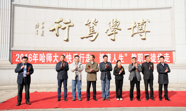 (李嘉炜/文)10月14日下午,行知楼南广场彩旗招展人声鼎沸,由校工会举办的“快乐行走,健康人生”教职工徒步走活动隆重拉开序幕。学校党委常委、副校长何晶,党委常委、工会主席赵科学,党委常委、组织部部长刘柏清,党委常委、宣传部部长郭崇林,党委常委、党委办公室主任徐德荣及机关党委、校团委、武装部保卫处相关领导参加了启动仪式。启动仪式由校工会副主席王明刚主持。