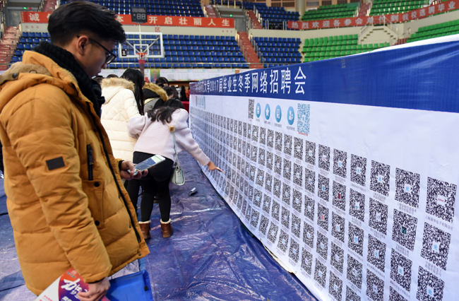 此次洽谈会除187家实体用人单位展台外,在体育馆内还张贴了未到现场的200余家用人单位的二维码墙,毕业生可以通过二维码直接查询到相关用人单位的招聘信息并投递简历。招聘工作线上线下同步进行,极大地方便了毕业生和用人单位,进一步拓展了就业视野,也成为了此次洽谈会的亮点。