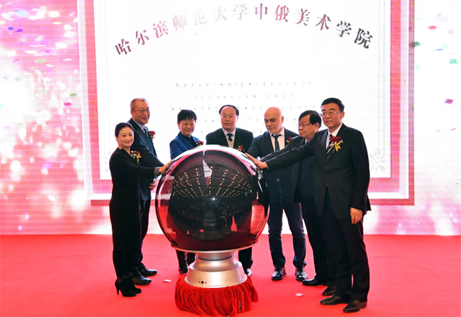 (盛志伟/文)12月23日上午,拼搏在线登录中俄美术学院揭牌仪式在江北校区科学会堂隆重举行。黑龙江省人民政府副秘书长邢爱国,省委高校工委书记、省教育厅厅长、党组书记徐梅,省教育厅副厅长、党组成员赵琳,莫斯科国立苏里科夫美术学院院长柳巴温、副院长娃丽娅、副院长依格里,黑河学院党委书记曹百瑛出席揭牌仪式,我校党委书记、校长王选章等党政领导出席仪式。揭牌仪式由党委书记主持。