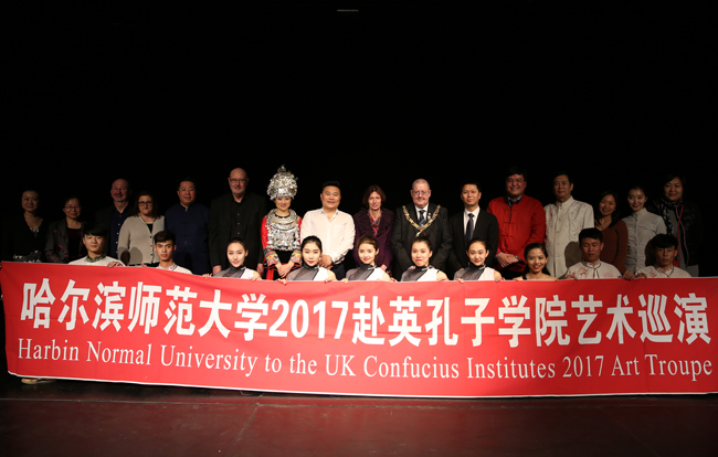 (刘丹妮/文)我校赴英国孔子学院艺术巡演团于2017年1月21日抵达兰卡斯特市,在布莱克浦学院剧场和兰卡斯特大学举行了两场演出,吸引了500余名英国当地观众前来观看。兰卡斯特市市长、兰卡斯特大学孔子学院英方院长沈伟和中方院长张凤春,下属孔子课堂英方负责人、Anchorsholme 学院校长Mr.Dow 以及Hawes Side学院校长Mr. Shepherd观看了演出。