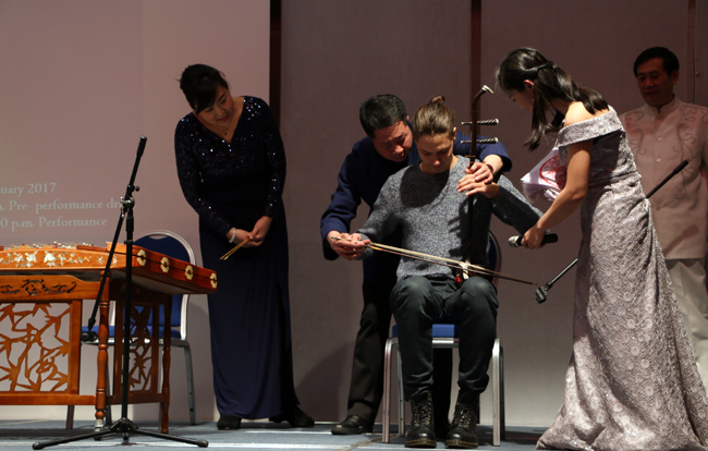 三场演出在轻松欢快的气氛中进行。由扬琴, 笛子,二胡组成的民乐小合奏相辅相成,韵味十足,充分展示了中国传统乐器的魅力。观众还被邀请上台亲自体验乐器演奏的乐趣。武术舞蹈《武韵悠长》形式新颖,极具画面感,赢得阵阵欢呼声。民歌独唱《龙船调》婉转悠美,互动性强,令观众赞叹不已。