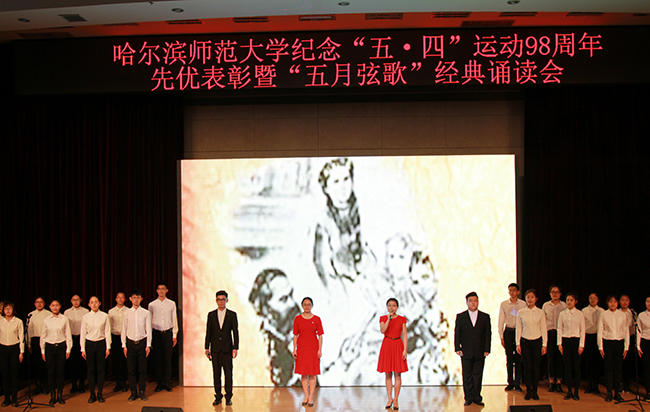 (刘强/文)为弘扬“五四”精神,表彰先进典型,5月3日下午,我校在科学会堂举办纪念五四运动98周年先优表彰暨“五月弦歌”经典诵读会。党委副书记孙立军,党委常委、工会主席赵科学,党委常委、宣传部部长郭崇林等学校领导及学生工作部(学生处)、团委、学生就业指导处负责同志出席活动并为获奖人员颁奖,各学院党委副书记及师生代表600余人参加活动。