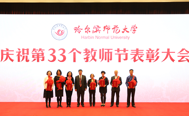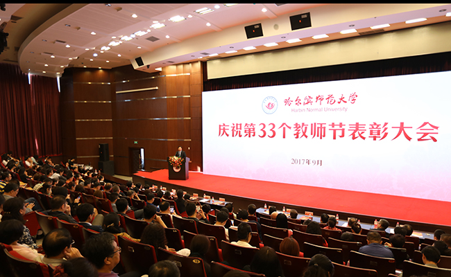 陈春花在大会上致辞。她向各位老师致以节日的问候,向各位获奖老师和同学表示最热烈的祝贺。她说,是哈师大广大教师的行动和成果使得这个教师节具有了更加丰富的内涵。她追忆恩师宁齐堃时说,老师有着高尚的道德情操和崇高精神追求,无差别地对待每一个学生,“润物无声”地引导教育,“疾风骤雨”地严格要求,以一个教师最好的职业自觉,积极而深刻地影响着学生。