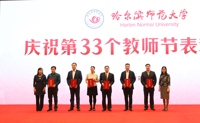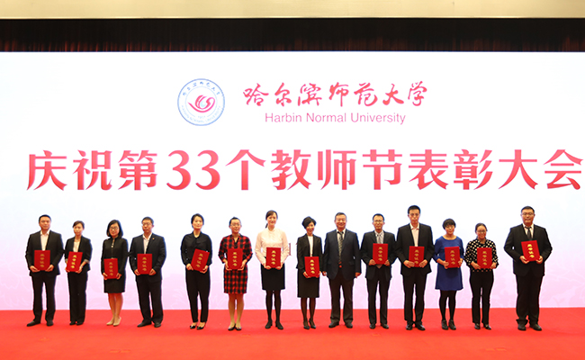 图 党委常委、副校长张喜田为获得“黑龙江省高校第四届青年教师教学竞赛”和第八届拼搏在线登录 “中青年教师优秀教学奖”教师颁奖