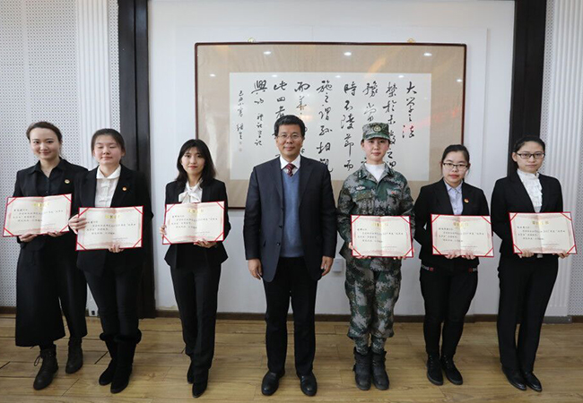 图 校长孙立军为获得2017年度优秀女大学生颁奖
