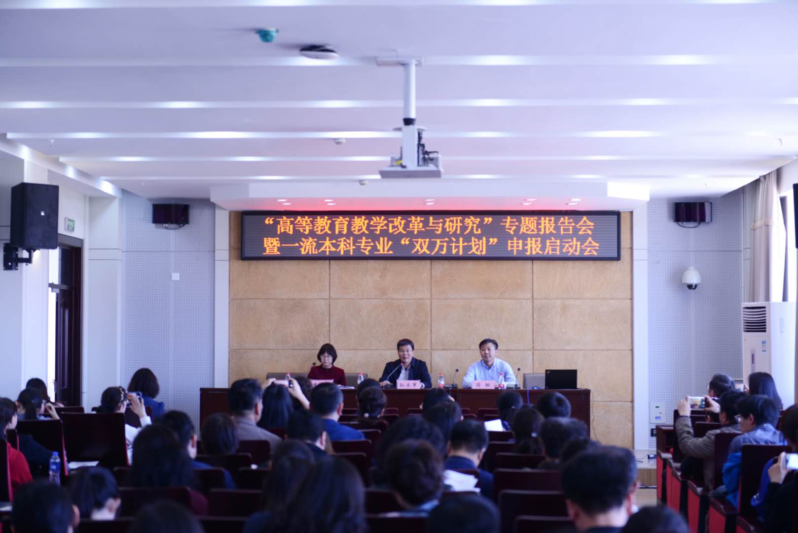 (康丹丹/文)为提高我校教师高等教育教学改革与研究的针对性和实效性,加强一流本科专业建设,进一步做好我校2019年度黑龙江省高等教育教学改革研究项目的申报和推荐工作,启动一流本科专业“双万计划”,5月29日下午,学校在行知楼746会议室举办“高等教育教学改革与研究”专题报告会暨一流本科专业“双万计划”申报启动会。省教育厅高等教育处处长蒋鲲作了题为“高校教师开展教育教学改革与研究的几点建议”的报告。校长孙立军出席会议,党委常委、工会主席李庆霞主持会议。各学院(部)教学副院长(副主任)、学院(部)教师代表、高教研究与教学质量评估中心全体工作人员和相关部处负责人120余人参加会议。