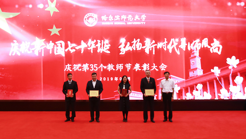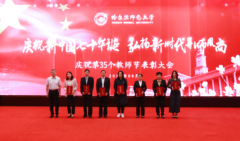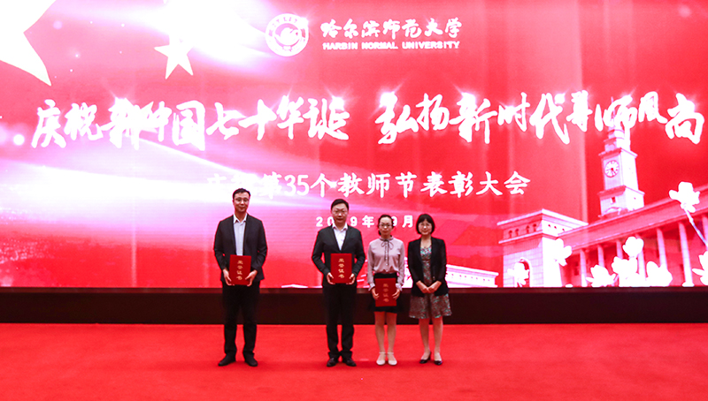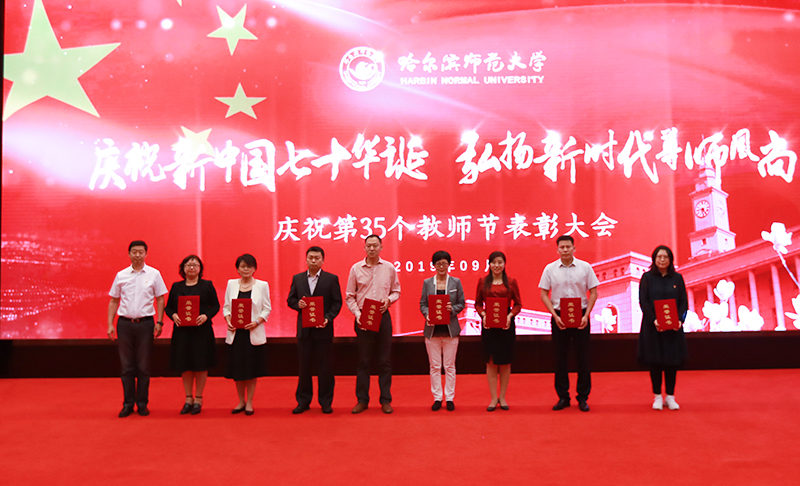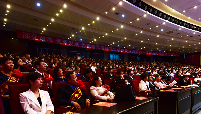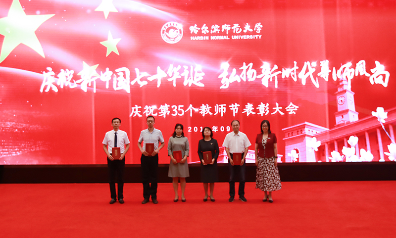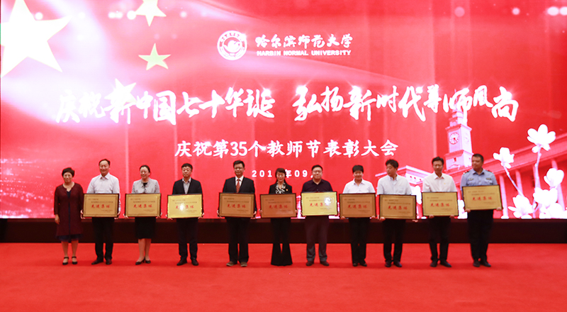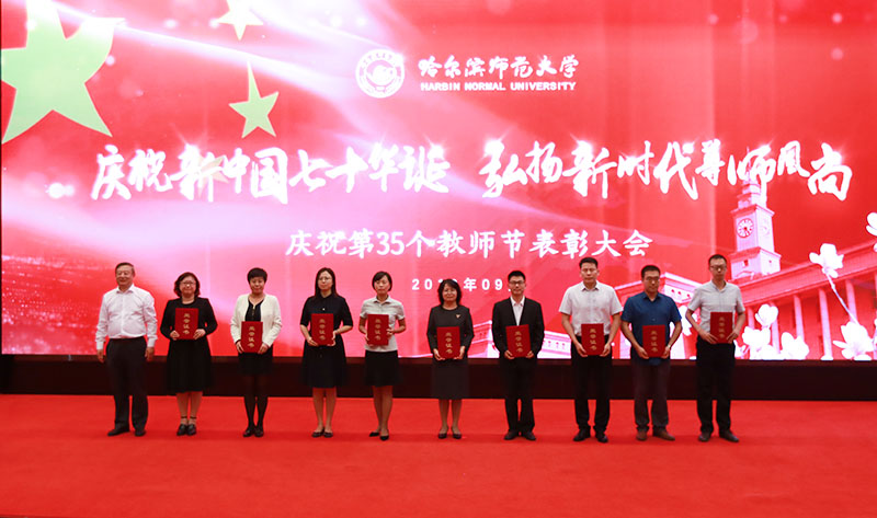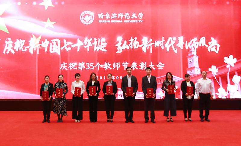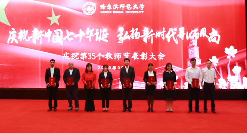 会上,党委副书记杨锐锋宣读获得2019年全国教育系统先进集体、先进工作者,全国优秀教师和第十一届全国高校辅导员年度人物入围奖、黑龙江省辅导员年度人物的获奖单位和教师名单;党委副书记郭砾宣读获得2018年全省高校“年度人物(群体)”,全省高校师德先进集体、先进个人和2019年全省高校师德先进集体的获奖单位和教师名单;副校长臧淑英宣读获得2019年全省模范教师,全省优秀教师的获奖教师名单;党委常委、副校长马明宣读《关于表彰拼搏在线登录2018—2019学年度先进集体和先进工作者的决定》;党委常委、副校长张喜田宣读获得2019年国家社会科学基金项目、国家自然科学基金项目和2019年黑龙江省自然科学基金优秀青年项目的获奖教师名单;党委常委、纪委书记郭加利宣读获得2018年黑龙江省第十八届社科奖和黑龙江省科学技术奖的获奖教师名单;党委常委、副校长赵科学宣读获得拼搏在线登录第四届教师“奉献奖”和第十二届“教学名师奖”的获奖教师名单;党委常委、工会主席李庆霞宣读获得拼搏在线登录第十届“优秀中青年教师教学奖”和2019年“宁齐堃”教学奖的获奖教师名单。伴随着欢快喜庆的乐曲和全场师生热烈的掌声,学校领导为获奖单位和教师代表颁奖。