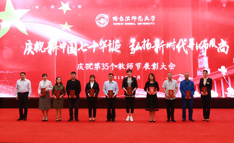 孙立军在总结时指出,全体教职员工要以受到表彰的单位和教师为榜样,不忘初衷,牢记使命、爱岗敬业、教书育人,改革创新、服务社会,人人争做有理想信念、有道德情操、有扎实学识、有仁爱之心的新时代“四有”好老师,为国家培养出更多的德智体美劳全面发展的社会主义建设者和接班人。要大力弘扬尊师重教的光荣传统,积极营造尊师重教的浓厚氛围,以满腔的热情关心教师,让广大教师安心从教、热心从教、舒心从教、静心从教,让老师们在岗位上有幸福感、事业上有成就感、心态上有荣誉感,让尊师重教成为新时代的校园风尚。继续大力弘扬“行知精神”、“师范精神”和“校训精神”,携手并肩、砥砺前行,为把哈师大早日建设成为“国内一流师范大学”而努力奋斗。