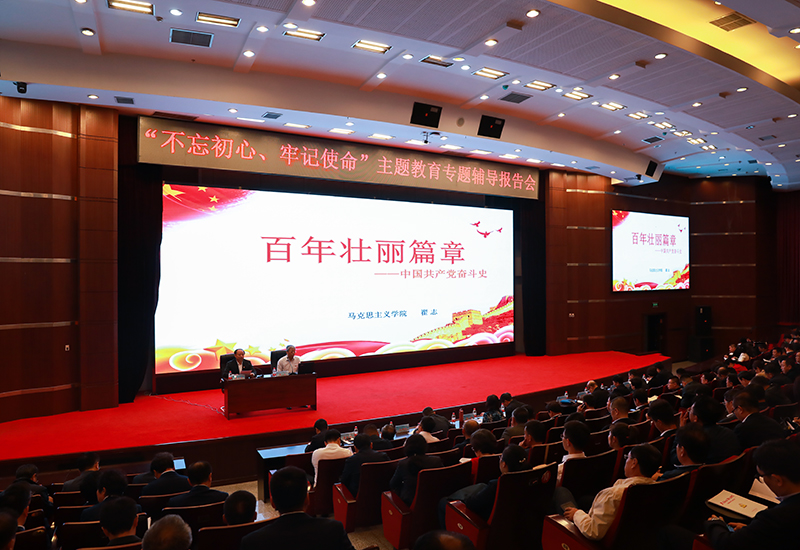 按照学校“不忘初心、牢记使命”主题教育学习教育工作部署,为深入推进我校主题教育开展,9月18日下午2时,学校在科学会堂举行“百年壮丽篇章——中国共产党奋斗史”专题辅导报告会,马克思主义学院翟志副教授作专题辅导报告。校党委书记、校长孙立军等学校领导班子成员、现职副处级以上干部、全体党支部书记听取报告。报告会由党委常委、宣传部长姜玉洪主持。