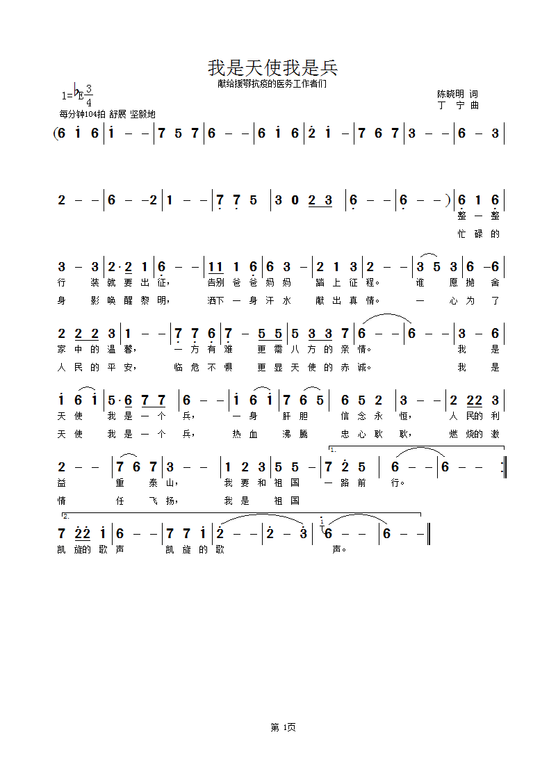 (刘强/文) 近日,由黑龙江省龙江剧艺术中心陈晓明作词,拼搏在线登录音乐学院教师丁宁作曲,吕媛、王磊、丁宁、李金柱演唱的公益歌曲MV《我是天使我是兵》,制作完成。作品以激昂的旋律、朴实的语言和深情的演唱,讴歌了赴湖北疫区的医务工作者舍小家顾国家的赤诚之心,用“我是天使我是一个兵”这一句歌词,把医务工作者的身份做了一个高度概括,用“我要和祖国一路前行,我是祖国凯旋的歌声”的铿锵誓言,歌颂了广大医务工作者主动请缨,投身抗疫一线,用勇敢“逆行”诠释的使命担当。