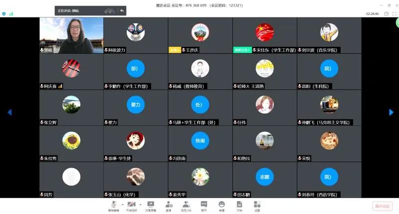郭砾指出,通过心理普查发现,学生受疫情影响,长时间居家隔离线上学习,产生的负面情绪无法宣泄,心理问题较为突出,心理育人工作任务依然繁重。为做好下一阶段心理育人工作,她提出四点意见:一是认清形势、高度重视。虽然我国疫情防控工作形势很好,但是世界范围疫情防控不容乐观,疫情结束时间尚不明朗。我们要提高政治站位,高度关注疫情后学生心理状况,做好预判和工作预案,以应对可能发生的任何状况。二是重视生命、充满温情。心理健康教育是触碰人内心最柔软、最敏感、最易产生抵触情绪的工作,工作中要讲求方法、注重技巧、细致入微,既要深入学生内心,也要深入家长内心,要有真情、有温度。三是结合方案、组织活动。因为疫情,今年的“5.25”心理健康节活动都以线上为主,各学院要展现较高的组织水平,全体辅导员要表现出较强的组织能力,积极调动全校学生参与进来,特别是心理健康程度低、受疫情影响大的同学更要参与进来,通过活动促进学生形成积极健康、理性平和的阳光心态。四是突出特点、凝练经验。在当前境况下开展心理育人工作一定是常规工作的非常规操作,心理育人要从工作内容、方法、平台、载体等方面多思考,要把心理育人工作与网络育人、资助育人相结合,注重挖掘专业特色,总结凝练工作经验,力争形成推广示范效应。