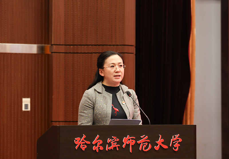 马克思主义学院院长段虹以《把“最难讲”的课上得“最精彩” 让“梦想家”变成时代“接力人”》为题发言,指出学院始终以“坚持不懈传播马克思主义科学理论,抓好马克思主义理论教育,为学生一生成长奠定科学的思想基础”为己任,以“培养新人”为目标,开创思政教学“五维一体”育人模式,以“要素协同”为手段,形成五门课程“联通联动”实践机制,以“知引融行”为原则,开展课上课下“同向互促”理论宣讲,以“红色资源”为依托,厚植全校师生“建功龙江”深厚情怀。