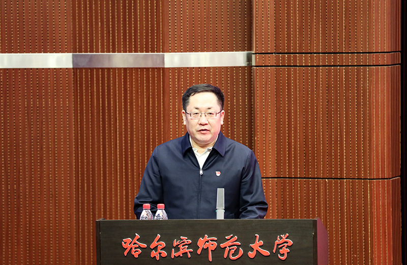 校党委书记在致辞中代表学校向双鸭山市和宝清县以及用人单位的各位领导和嘉宾、校友的到来表示热烈欢迎。他指出,我校注重发挥学科专业和人才优势,主动服务国家战略和地方经济社会发展需求,与双鸭山特别是宝清县结下了深厚的情谊。面对中央部署的“六稳”“六保”工作任务,哈师大与宝清县有着共同的使命担当。学校作为省属师范院校,深感责任重大、使命光荣。学校要充分发挥优势,促进大学生成长成才,推动宝清县的改革发展;通过校地合作的切实举措,吸引更多师大学子扎根龙江沃土,发挥聪明才智服务龙江、奉献龙江;通过共同努力,积极推动科研成果在龙江落地转化,推进龙江全面全方位振兴。同时,学校也将继续把服务龙江经济社会发展作为“国内一流师范大学”建设的重要内容和有力支撑,以更加坚定的决心、更加系统的合作,推动校地双方互惠共赢,让更多的哈师大学子在黑龙江沃土上放飞青春梦想、成就精彩人生。