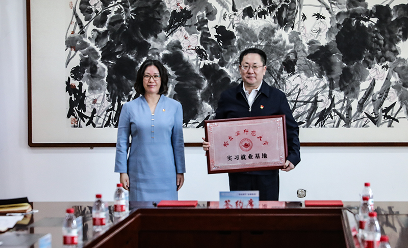 在宣讲会前,孙立军与王国强签署了《校地合作协议》。郭砾为王国强颁授了《拼搏在线登录实习就业基地》牌匾。
