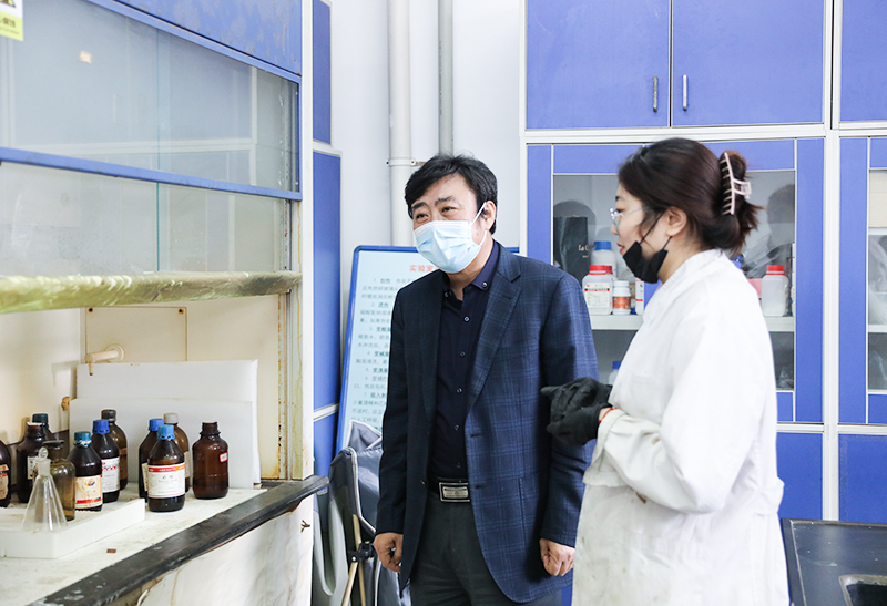 赵国刚来到我校化学化工学院多酸化学、有机合成等实验室进行安全检查,对学院实验室安全提出明确要求。赵国刚强调,生命高于一切,安全重于泰山,安全教育要长抓不懈,时刻保持警惕,坚决杜绝安全事故的发生;对危险化学品的管理和使用要严格遵照相关制度进行,尤其是对易致毒品硝酸、硫酸等试剂的使用要有记录,使用后及时入柜,双锁管理,以防出现试剂遗失等安全事故。他强调,安全工作重在日常,对学生要严格要求,提高学生安全意识,领取和使用硝酸、硫酸等危险化学品时要进行登记,做好使用记录,对危险化学品从领取到使用进行全周期跟踪。