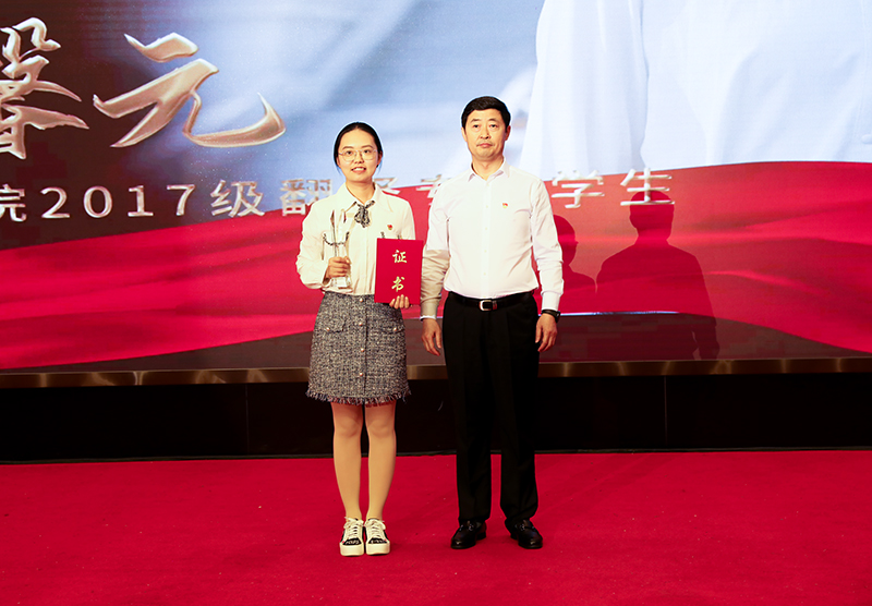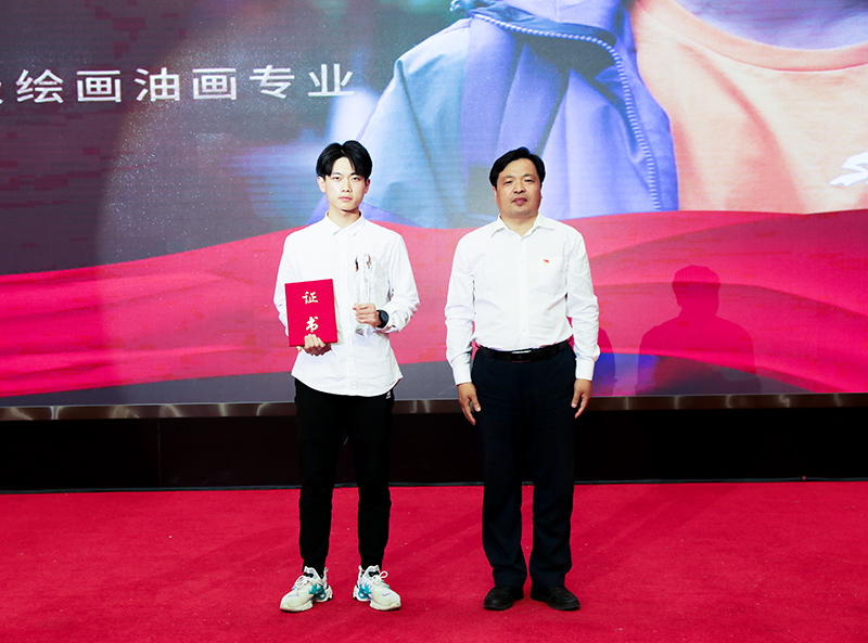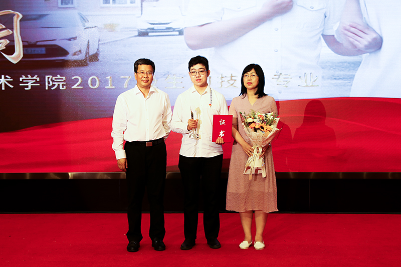 图 校长孙立军为感动校园十佳大学生个人颁发获奖证书和奖杯