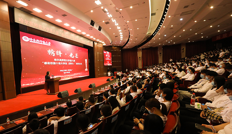 颁奖仪式上,学校领导为十佳大学生个人及群体颁发了获奖证书和奖杯,并集中展示了获奖个人和集体的感人事迹和动人故事。面对困难和挫折,他们不屈服、不认输,迎难而上、披荆斩棘,同命运抗争,向“敌人”宣战;面对学业和人生,他们不懈怠、不盲从,刻苦钻研,自强励志,用双手拼搏,用汗水浇灌;面对家庭和民族,他们有担当、有大义,孝老爱亲,心存家国,扬中华美德,践报国之行,充分展现了新时代青年学子的精神风貌和优良品格。一个又一个感人肺腑、催人奋进的故事让全场观众深受感动,雷鸣般的掌声是对这些感动校园的人和故事的最大肯定。