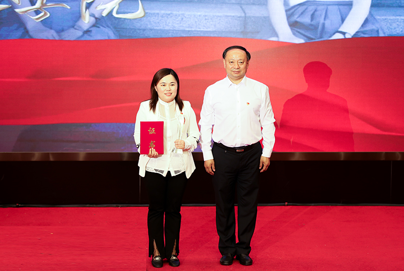 图 党委常委、纪委书记,省监委驻拼搏在线登录监察专员郭加利为感动校园十佳大学生个人颁发获奖证书和奖杯