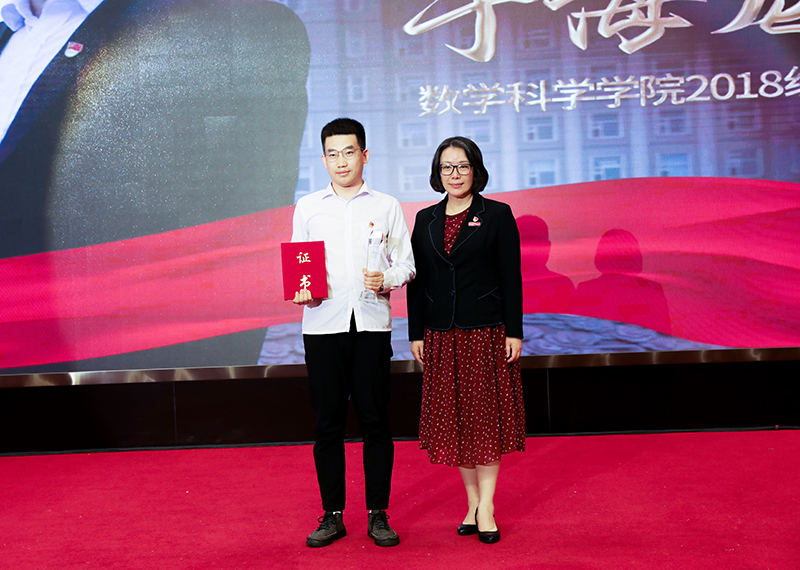 图 党委常委、副校长马明为感动校园十佳大学生个人颁发获奖证书和奖杯