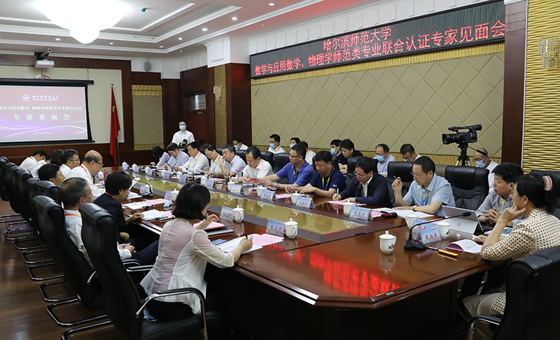 (张妍/文)受教育部高等教育教学评估中心委托,6月20日至23日,由教育部师范专业认证委员会委员宋冬生教授任联合大组长的师范类专业联合认证专家组一行12人,对我校数学与应用数学专业和物理学专业二级认证进行现场考查。21日上午,专业认证专家组见面会在行知楼0107会议室召开,会议第一阶段由省教育评估院院长景丽英主持,第二阶段由联合认证专家组组长宋冬生主持。数学与应用数学专业认证专家组组长天津师范大学王光明及成员华中师范大学郑高峰、陕西师范大学罗新兵、长春市十一高中罗彦东、浙江省教育考试院薛玉刚,物理学专业认证专家组组长湖南师范大学银海强及成员华东师范大学潘苏东、嘉兴学院丁连生、哈尔滨第163中学刘云峰、云南省教育评估院刘虹,项目管理员张立明出席见面会。我校党委书记、校长孙立军等全体领导班子成员,相关职能部门负责人,各学院院长,参与认证专业所在学院领导班子成员、参评专业负责人参加会议。