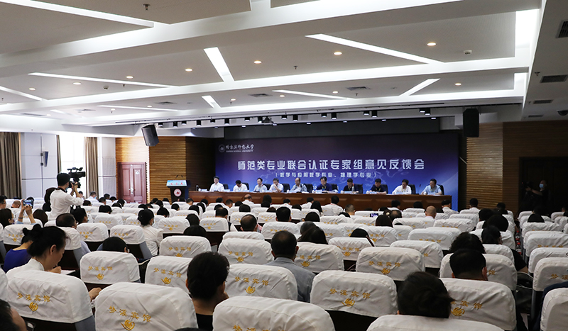 (张妍/文)6月23日上午,教育部师范类专业认证专家意见反馈会在我校梦溪宾馆二楼报告厅召开。反馈会由联合认证专家组组长宋冬生主持。数学与应用数学专业认证专家组组长王光明及成员郑高峰、罗新兵、罗彦东、薛玉刚,物理学专业认证专家组组长银海强及成员潘苏东、丁连生、刘云峰、刘虹,项目管理员张立明,省教育厅二级巡视员丁哲学,省教育评估院院长景丽英出席会议。校党委书记、校长孙立军等全体领导班子成员,各学院书记、院长、副书记、教学副院长、专业负责人,相关职能部门及单位负责人,数学科学学院、物理与电子工程学院教师代表参加会议。