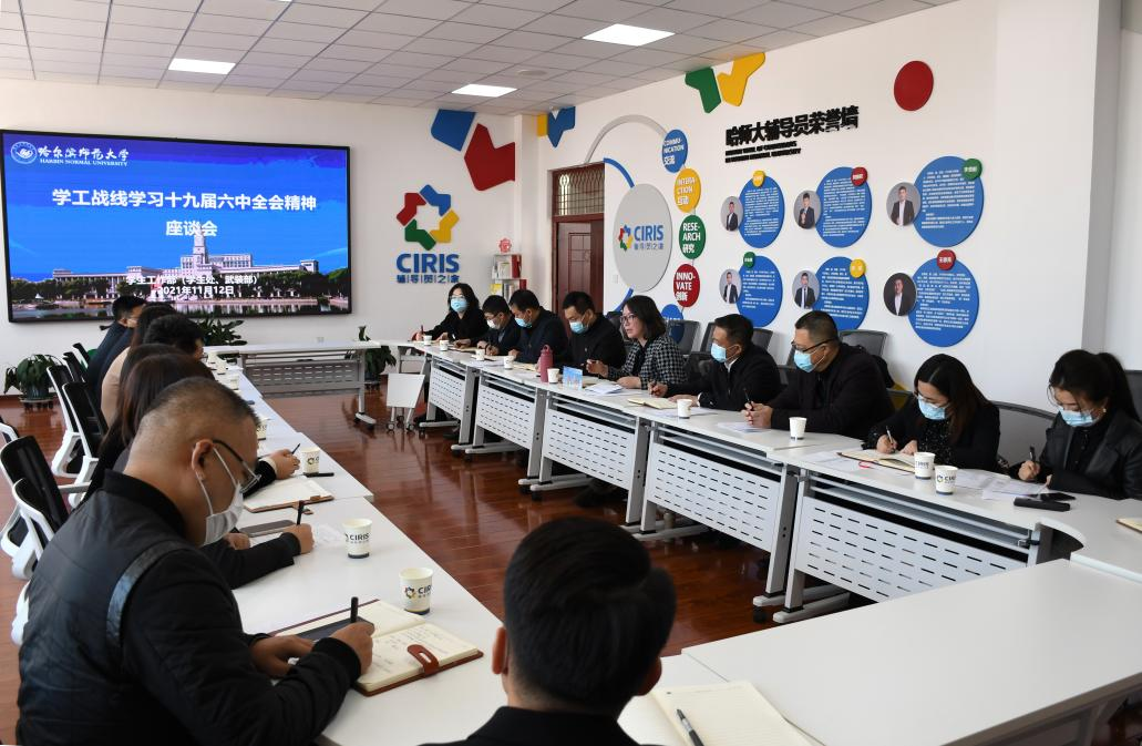 党委副书记、工会主席郭砾组织我校学工战线召开学习党的十九届六中全会精神座谈会。与会人员全程观看了党的十九届六中全会精神的新闻发布会,并就贯彻落实十九届六中全会精神进行座谈交流。郭砾强调,学工战线要以此为契机,着眼培养担当民族复兴大任的时代新人,走好新的赶考之路,交出新的满意答卷,在新时代新征程上展现新气象新作为。