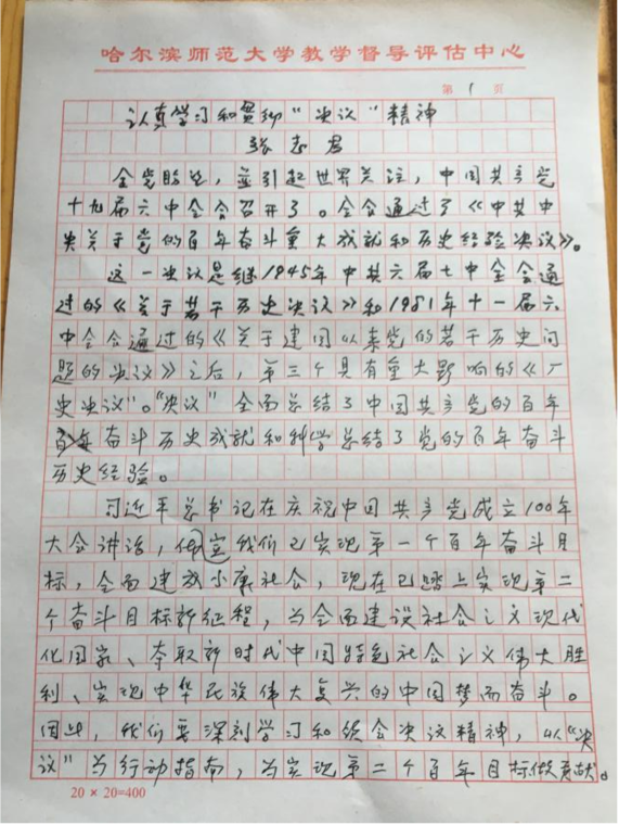 “中国好人”、马克思主义学院95岁高龄的老党员张志君教授说,值此党的十九届六中全会召开之际,作为一名95岁高龄的老党员,内心思绪万千,周身热血沸腾!“没有共产党就没有新中国!”一个强烈的声音从内心深处发出,于是手执钢笔一气呵成抒发内心感受:全党盼望,并引起世界关注的中国共产党十九届六中全会召开了。全会通过了《中共中央关于党的百年奋斗重大成就和历史经验决议》。这一决议是继1945年中共六届七中全会通过的《关于若干历史决议》和1981年十一届六中全会通过的《关于建国以来党的若干历史问题的决议》之后,第三个具有重大影响的历史“决议”。“决议”全面总结了中国共产党的百年奋斗历史成就和科学总结了党的百年奋斗历史经验。习近平总书记在庆祝中国共产党成立100年大会讲话时,宣布我们已实现第一个百年奋斗目标,全面建成小康社会,现在已踏上实现第二个奋斗目标新征程,为全面建设社会主义现代化国家、夺取新时代中国特色社会主义伟大胜利、实现中华民族伟大复兴的中国梦而奋斗。因此,我们要深刻学习和领会决议精神,以“决议”为行动指南,为实现第二个百年目标作贡献。