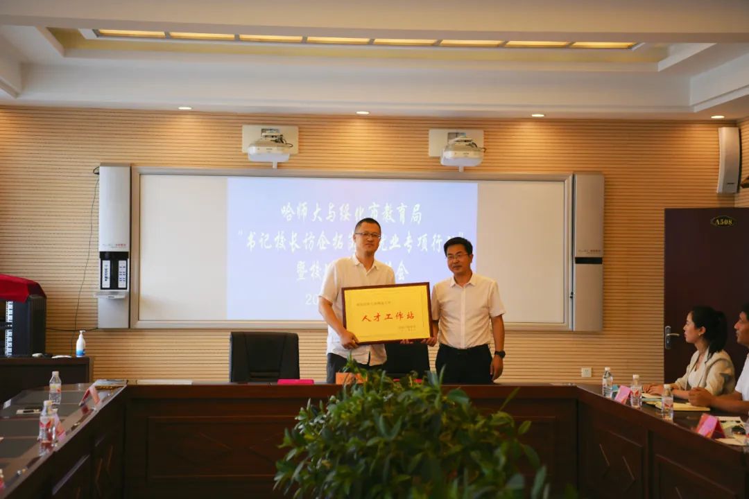 座谈会上,我校与绥化市教育局互授“拼搏在线登录就业基地”“绥化市驻拼搏在线登录人才工作站”牌,双方签署就业合作协议。