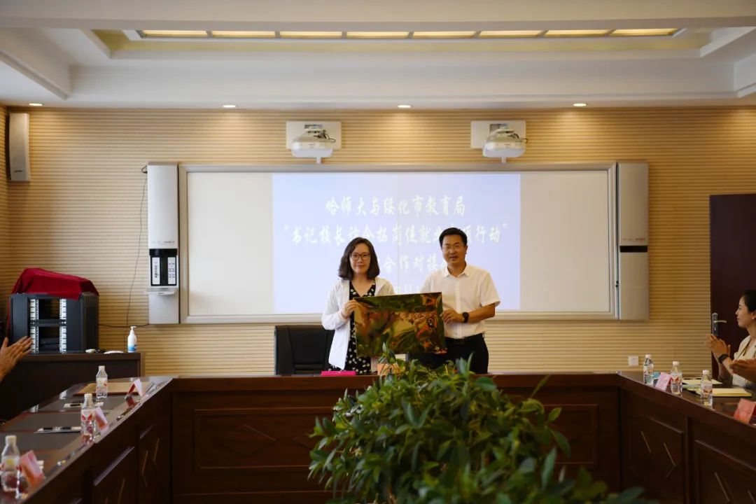姜海波简要介绍了绥化市教育工作整体情况,对我校人才培养质量给予高度评价。姜海波表示,近五年,绥化市教育系统通过校园招聘为主的各类招聘形式,引进哈师大701名本科毕业生和268名研究生,服务一线教学工作,目前已逐步成长为基础教育的骨干力量,区域内众多学校校长、特级教师、学科带头人为师大毕业生,师范大学为绥化教育事业发展做出了突出贡献。未来,希望通过校地合作的不断深入,加强沟通联系,让更多优秀毕业生服务绥化基础教育事业。