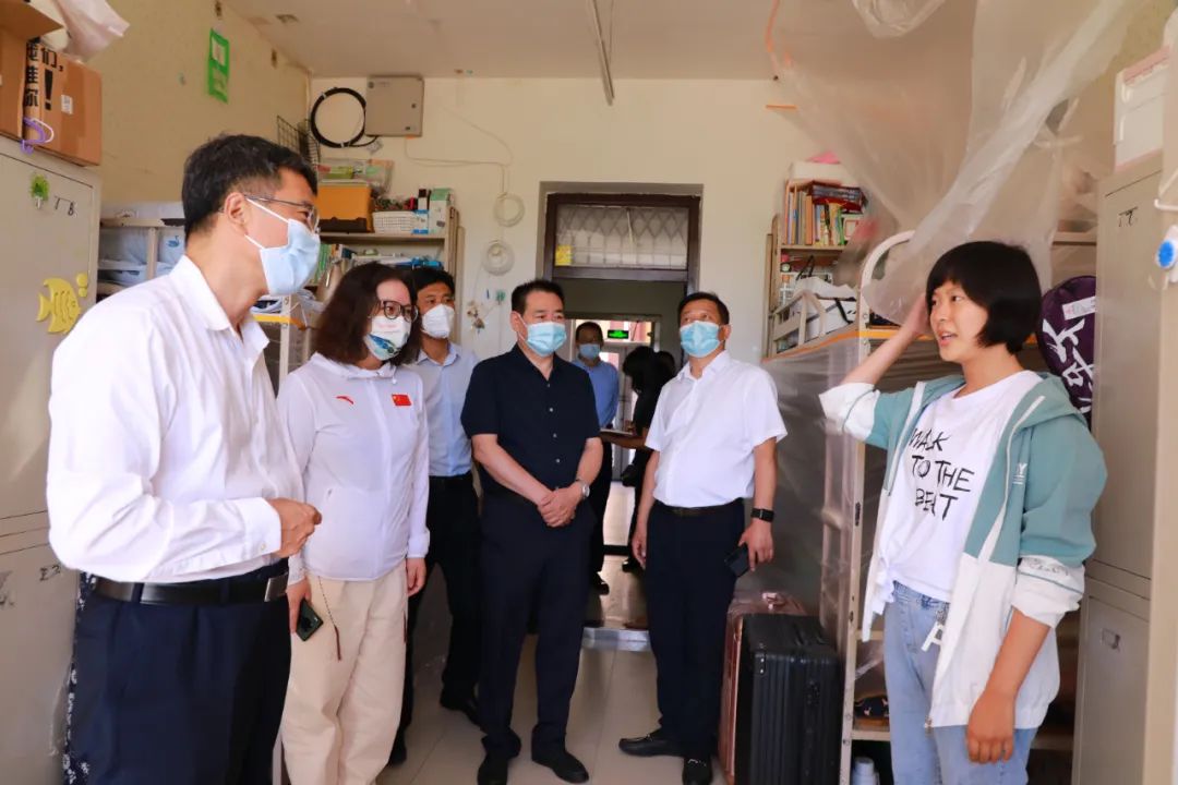 孙立军强调,要严格落实教育部和省委有关工作要求,将师生生命安全和身体健康放在首位,坚决贯彻疫情防控方针政策,坚持常态化科学精准防控与应急处置相结合,因时因势调整优化防控措施。在学生通道入口处,他详细了解学生入校资格审查、核酸检测和行李转运等流程,要求各单位各部门进一步提高政治站位,加强沟通协调,增强服务意识,强化学生返校期间学生管理、安全保卫、后勤保障等工作的系统性,做到精细化、人性化、常态化,确保学生返校工作稳步推进。在学生公寓,他与返校学生和公寓管理员亲切交流,检查学生公寓隔离室,并就目前执行的疫情防控政策向学生进行详细解答和说明,他要求,要全面细致做好学生公寓管理工作,确保公寓环境整洁、出入有序。在滨湖园食堂,他详细询问了招标引进餐饮企业区域和学校自主经营区域的经营项目、品类和价格,他强调,要在确保食品质量、食品安全和合理价格的前提下,为师生提供良好的就餐环境和优质服务。