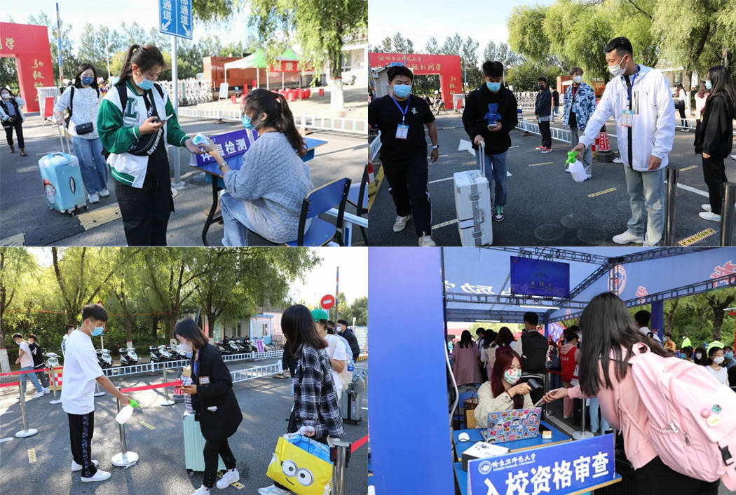 新生报到期间,学校分别在哈尔滨火车站、哈尔滨西站、哈尔滨北站设立接待处,安排迎新客车,接送前来报到的学生和家长。学校在江北校区社科楼前和江南校区艺术大厦楼前,为家庭经济困难新生开设“绿色通道”,并提供“国家助学贷款”“国家奖学金”“国家助学金”等咨询服务。学校组织千余名学生志愿者参与迎新工作,负责接站及引导学生测温、验码、核酸检测等工作,人性化服务中彰显志愿精神。按照疫情防控要求,学校安排数十辆经过严格消杀的行李转运专用车运送行李包裹,为新生提供“从入校门到住进公寓”的全程引导服务,同时为学生家长设置了家长入校缓冲区,组织家长乘车观光校园,让新生和家长充分感受学校的热情与温暖。