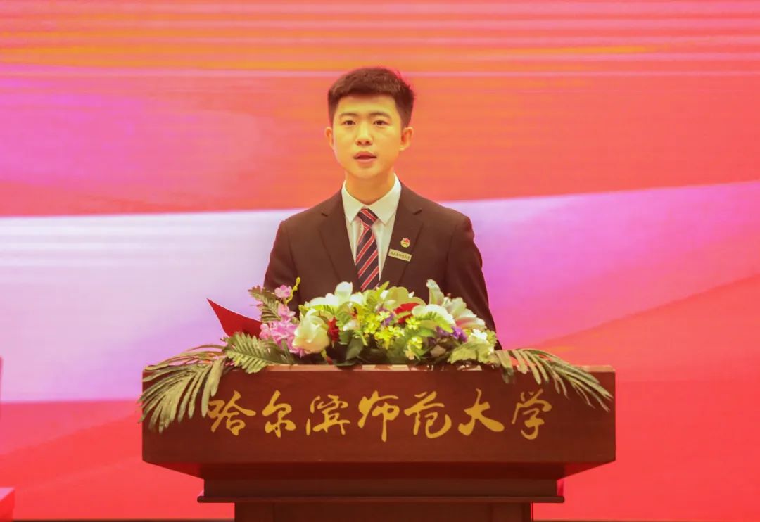 教师代表、黑龙江省第六届高校青年教师教学竞赛文科组一等奖获得者、西语学院于慧莹分享了自己的感悟和体会。哈师大学子要明晰为什么学习和奋斗,努力做到不负韶华;要通过学会独立思考逐步走向成熟,尽早确定自己的坐标、起点和方向;要“厚植笃行”,不断积累、身体力行、知行合一,在哈师大学有所成,为母校再添荣光。