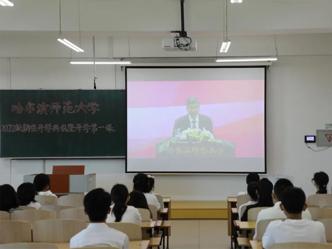 上午9时,在庄严的国歌声中,开学典礼正式拉开序幕。本科新生代表、经济学院会计学专业2022级本科生杨雨辰分享了圆梦师大的喜悦与激动,号召同学们树立理想、坚定信念,刻苦学习、锐意创新,艰苦奋斗、无私奉献,崇德向善、严守纪律,做政治合格、心系家国、志存高远、可堪大任的哈师大人。研究生新生代表、马克思主义学院思想政治教育专业2022级博士研究生许海娇在发言中表示,作为哈师大学子,要牢记“敦品励学,弘毅致远”的校训精神,坚定理想信念,努力锻炼本领,刻苦学习知识,将自身发展与师大发展相结合,与社会需要、国家繁荣、民族复兴相统一,为实现中华民族伟大复兴贡献自己的青春力量。在校学生代表、校学生会主席团成员、江南校区执行主席、国际美术学院绘画(版画)专业2020级本科生任丽佳在发言中,以自身经历激励2022级新同学坚持读书、坚持运动、学会自我管理,牢记党的教诲,立志民族复兴,不负韶华,不负时代,不负人民,在青春的赛道上奋力奔跑,争取跑出当代青年的最好成绩。