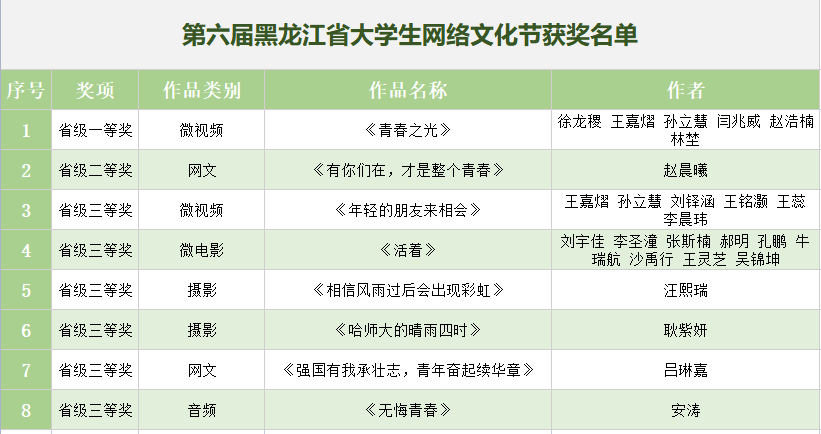(赵鹤/文)近日,第六届“全省大学生网络文化节”和“全省高校网络教育优秀作品推选展示活动”评选结果揭晓,我校师生共有19项作品斩获佳绩,其中一等奖3项,二等奖5项,三等奖11项获奖作品质量、数量再创新高。