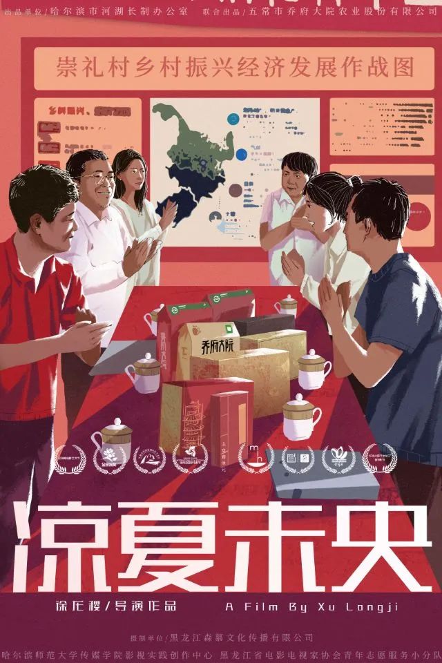 《凉夏未央》是受哈尔滨市委市政府、哈尔滨市河湖长制办公室邀请,黑龙江省电影电视家协会指导,五常市乔府大院农业股份有限公司赞助,以“乡村振兴”为主题的公益微电影。我校传媒学院教师裴佳兴担任编剧,徐龙稷担任导演,教师郝树国、李贵龙、李焕达、尹一鸣、席琰妍及音乐学院教师董宸共同创作。从策划到成片,我校师生团队创作历时半个月,剧组成员40余人,经过四天三夜拍摄,克服烈日暴晒、暴风暴雨等困难,顺利完成拍摄任务。