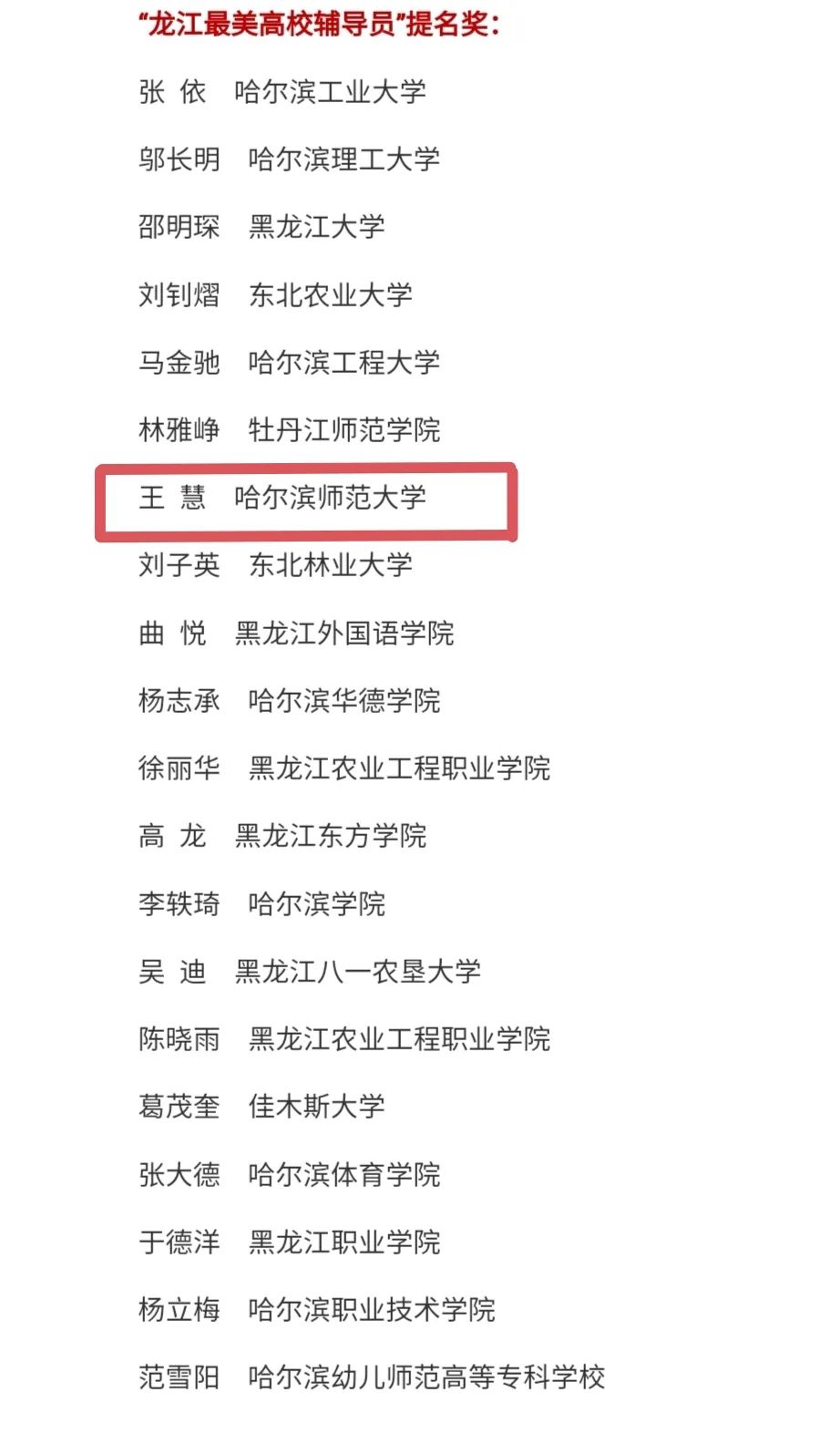 2022年“龙江最美高校辅导员”